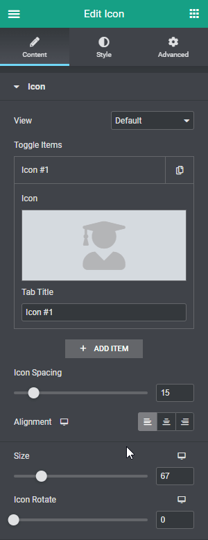 5. Je kunt via de ‘Style’ tab de kleur van het icoon aanpassen. Het is ook mogelijk om de hoverinstellingen van het icoon in te stellen. Hierbij zal het icoon een andere kleur krijgen, wanneer iemand met de muis over het icoon beweegt.