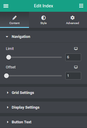 8. Klik nu op de index widget om deze te bewerken. Onder de tab Content zijn verschillende instellingen aan te passen. Limit is het totaal aantal pagina’s dat wordt opgehaald. Bestaat je publicatie uit totaal 6 pagina’s (exclusief de voorpagina), dan vul je hier 6 in. Offset is de waarde van de eerste pagina die je wilt tonen. Let op: een offset van 1 betekent dat wat pagina 2 is in de Issue Manager als eerste wordt getoond. Bij offset wordt de voorpagina namelijk niet meegerekend;
