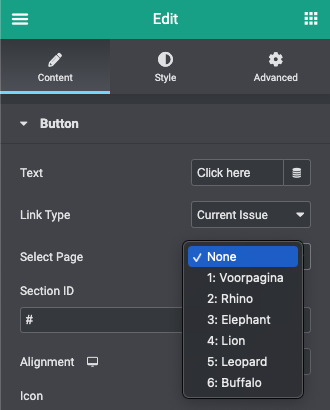 6. Wanneer je ‘Custom’ selecteert bij ‘Select Section’ navigeert de link naar het anchorpoint die je invult bij het invulveld onder de dropdown, ‘Anchor ID’. Hiervoor moet wel een anchor zijn toegevoegd op de pagina;