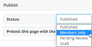 2. Onder Publish zie je Status staan. Pas hier de status aan naar ‘Members only’;